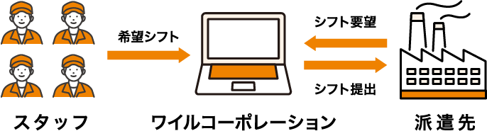 繁閑による波動に柔軟対応繁忙期・閑散期、増産・減産に合わせて依頼人数の調整が可能です。